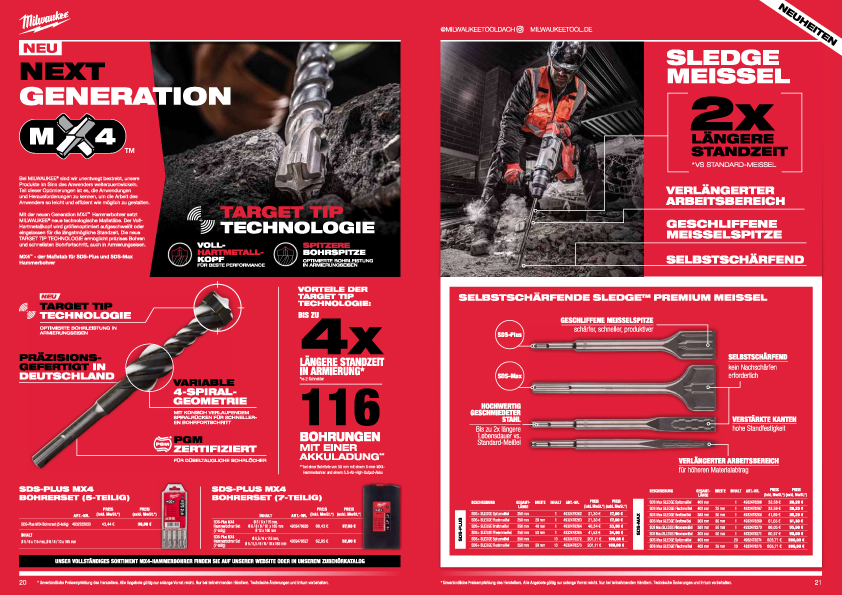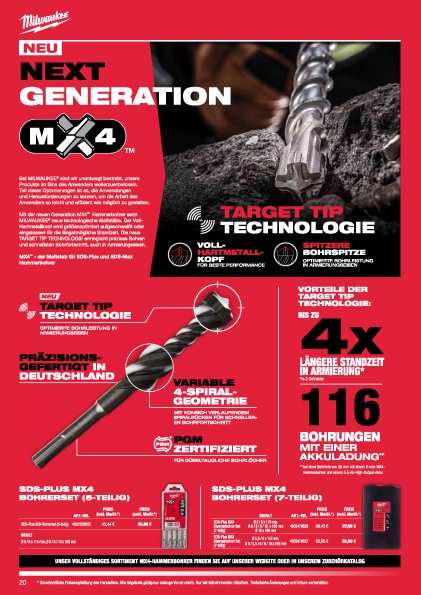 Milwaukee ist einer der weltweit führenden Hersteller von Akku-Werkzeugen für professionelle Anwender. Die Milwaukee Akku-Geräte sind in vier verschiedenen Systeme unterteilt: M12, M18, MX Fuel und ONE KEY. Die Systeme M12 und M18 wiederum unterteilen sich jeweils in zwei Leistungsklassen, nämlich die FUEL-Technik und die REDLITHIUM-Technik. Darüber hinaus verfügt Milwaukee über ein Zubehörsortiment von über 2.500 Artikeln.